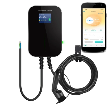 - Wallbox BS20-BC-22kW-APP is a smart EV charger with 22 kW power, Type 2 connector, LCD screen, and app control. Ideal for home and business use, it's weather-resistant, comes with a full set of safety features, and includes a 6.1 m charging cable.