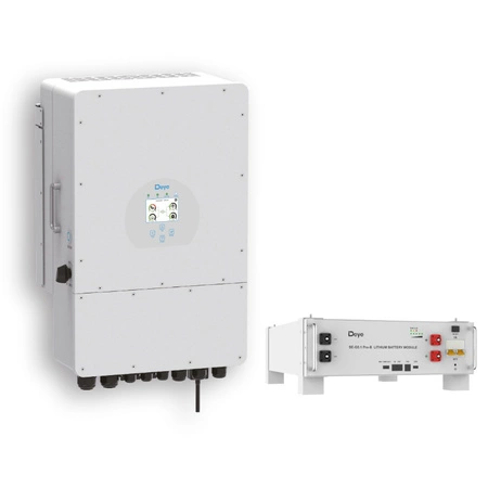 - Kit compuesto por inversor híbrido Deye SUN-8K-SG01LP1-EU y módulo de batería Deye SE-G5.1PRO-B